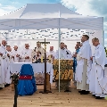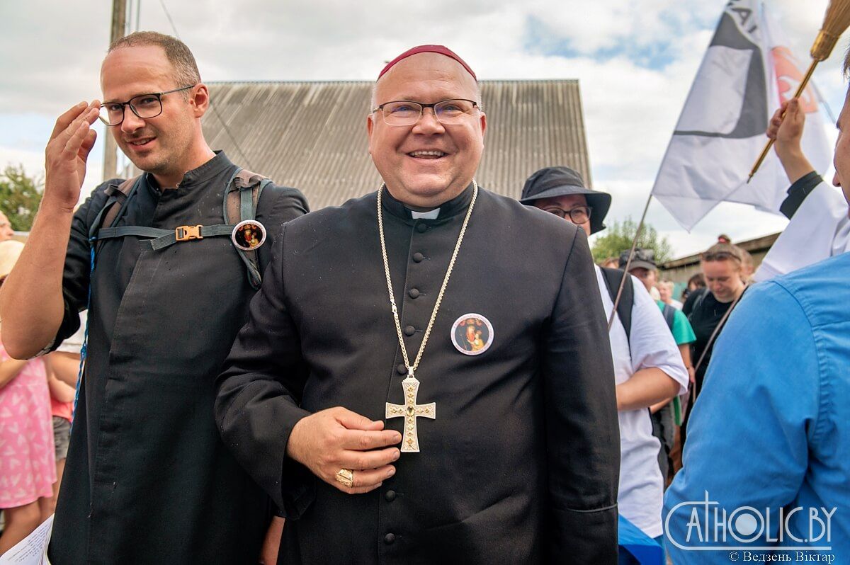 Асаблівай радасцю падчас урачыстай Імшы стала прысутнасць групы людзей, якія ў кастрычніку прымуць удзел у аўтобуснай пілігрымцы ў Рым. Мітрапаліт Юзаф Станеўскі разам з біскупам Аляксандрам Яшэўскім уручылі ім пілігрымскія хусты — знак распазнання шляху і духоўнай еднасці, які будзе суправаджаць іх на дарозе да святыняў Вечнага горада.