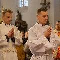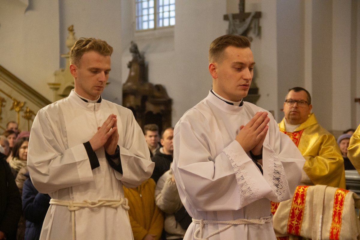 У пачатку літургіі біскуп Уладзімір назваў гэты дзень выключным для Касцёла, асабліва Касцёла на Гродзеншчыне, і заахвоціў маліцца за новых дыяканаў.