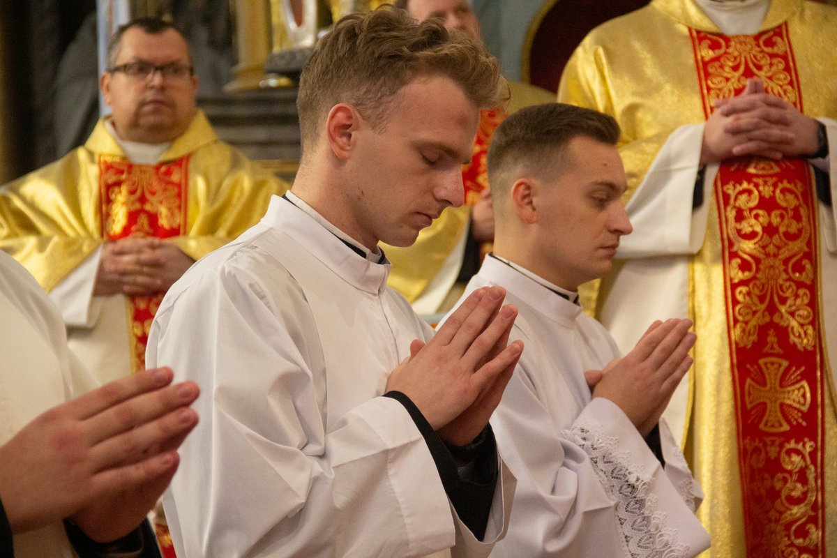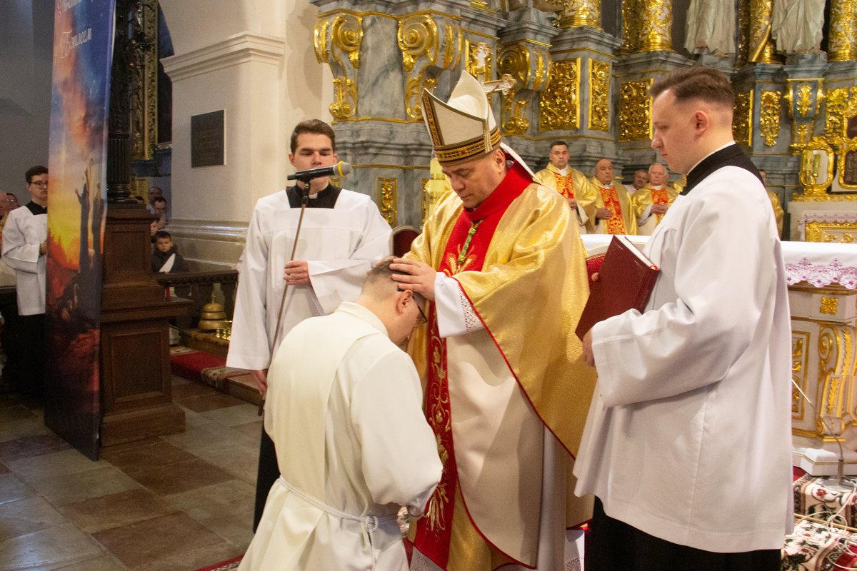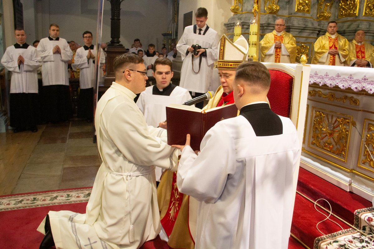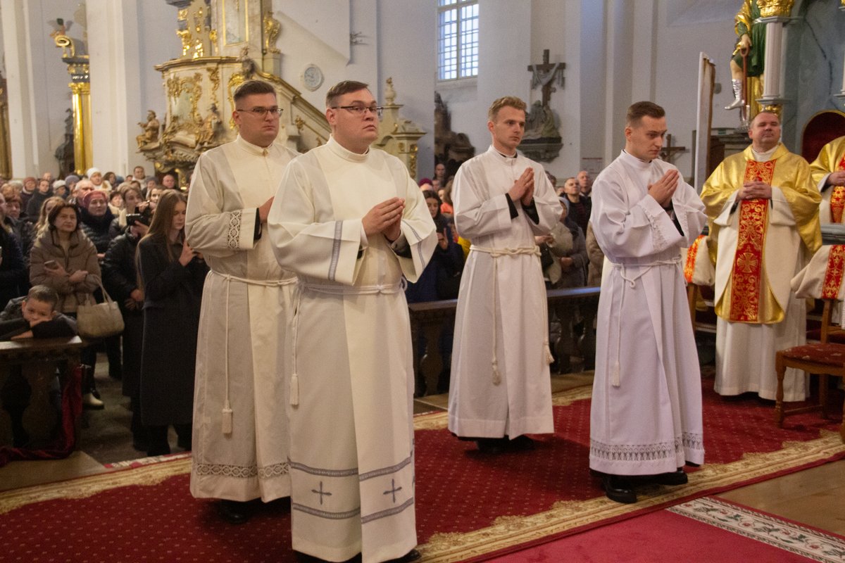 Кажучы пра 320-годдзе з часу асвячэння катэдры, ён заўважыў: «Гэтая святыня памятае розныя гістарычныя этапы, пераследы савецкага часу, хвалі атэізму і ідэалагічнага ціску, але таксама адвагу святароў, якія, негледзячы на небяспекі, хрысцілі, спавядалі, падтрымлівалі веру людзей. Але найважнейшае — што на працягу стагоддзяў у гэтай святыні вучыліся служыць. Святары станавіліся тут слугамі Божага народу». У сувязі з гэтым біскуп заклікаў новых дыяканаў «не баяцца быць маленькімі: менавіта маленькія людзі змяняюць гісторыю, бо Бог не шукае вялікіх — Ён робіць вялікімі тых, хто дае Яму сваё маленькае сэрца». Іерарх нагадаў, што дыяканскае пасвячэнне — «не крок да кар’еры, не знак павагі, а пасвячэнне ў служэнне».