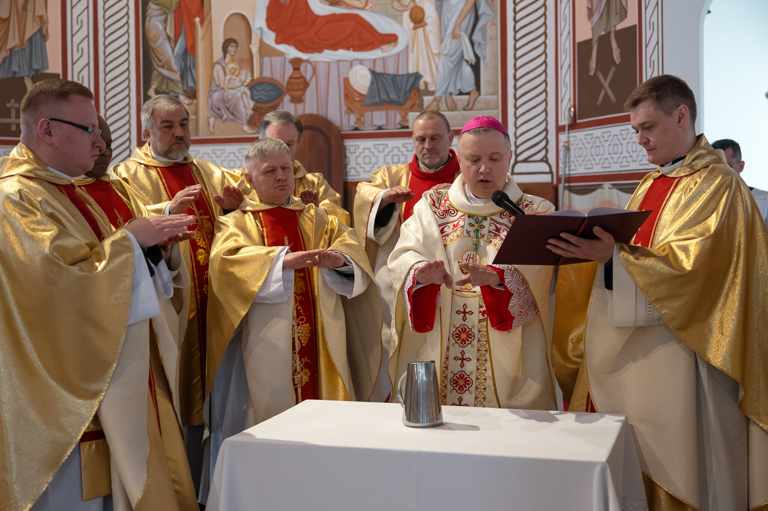 Падчас Эўхарыстыі адбылося аднаўленне святарскіх абяцанняў — важны момант, які падкрэслівае вернасць святароў свайму пакліканню і гатоўнасць працягваць служэнне. Акрамя таго, падчас набажэнства быў урачыста благаслаўлены алей хворых, які пазней будзе выкарыстоўвацца для намашчэння вернікаў, якія сутыкнуліся з хваробамі. Таксама быў касэкраваныы алей хрызма — асаблівы алей, які знаходзіць сваё прымяненне ў найважнейшых сакрамэнтах, такіх як хрост, канфірмацыя, святарскае пасвячэнне і пры кансэкрацыі новага алтара.