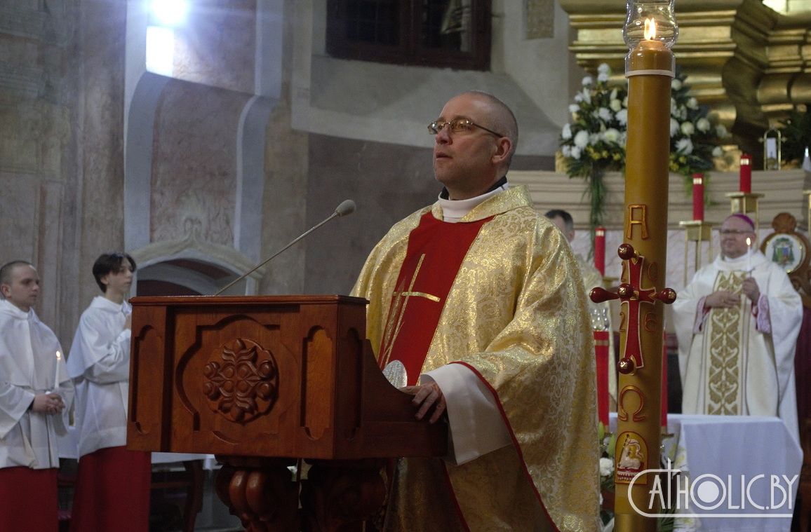 У сваёй гаміліі біскуп Аляксандр падкрэсліў, што «Пасхальная ноч — гэта момант, калі радасць перамагае смутак, а святло канчаткова трыумфуе над цемрай. Учора вернікі перажывалі Муку Пана, але сёння — у ноч Уваскрасення — сэрцы напаўняюцца надзеяй».