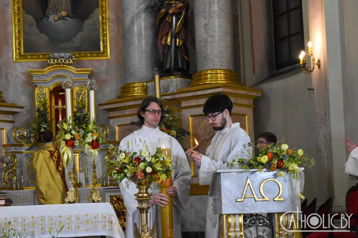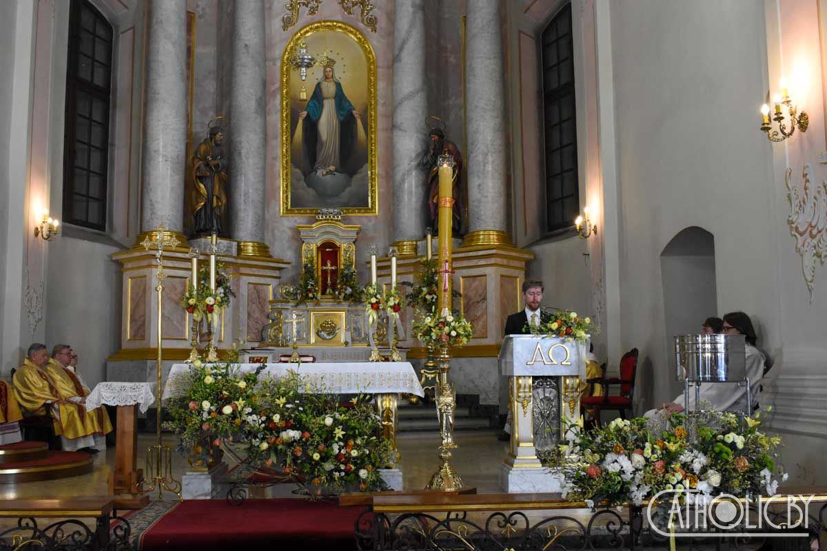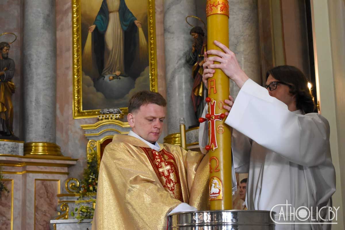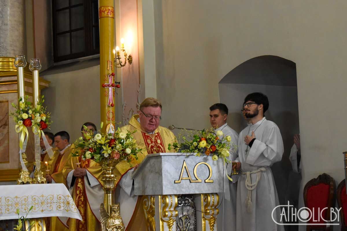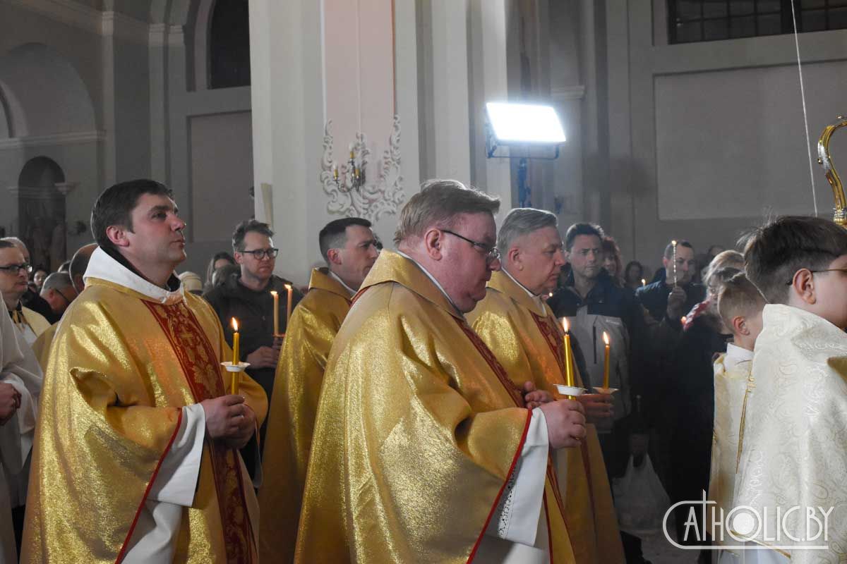 Завяршылася Пасхальная вігілія Эўхарыстычнай літургіяй і ўрачыстым благаслаўленнем.