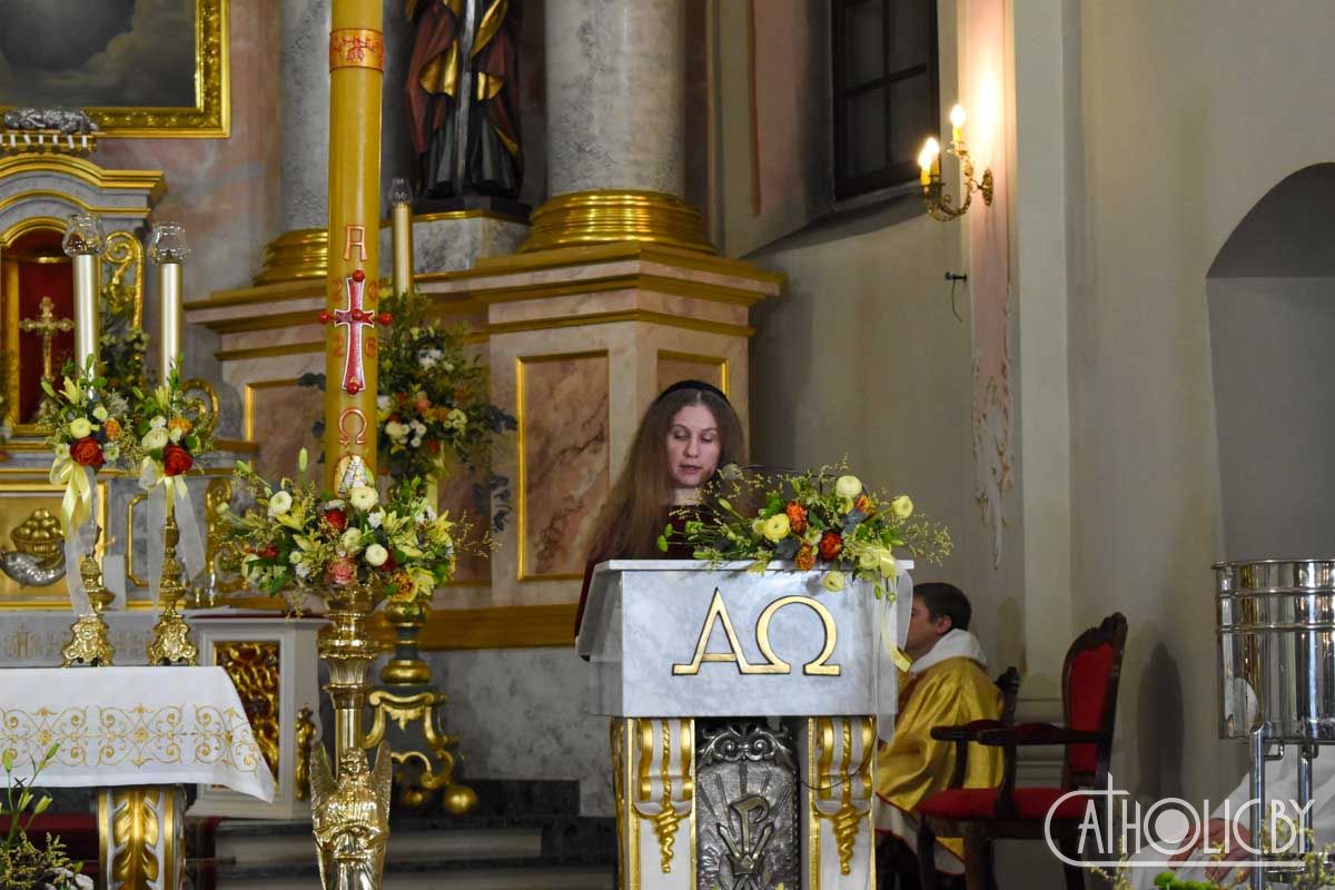 Пасля адспявання старажытнага велікоднага гімна Exultet распачалася Літургія слова, дзе прагучала дзевяць урыўкаў са Старога Запавету і чытанне з Евангелля. Кожны з урыўкаў нагадваў удзельнікам літургічнай цэлебрацыі пра поўны любові збаўчы план Бога ад стварэння свету да адкуплення чалавека Сынам Божым. Правобразам Пасхальнай вігіліі як літургічнага ўспаміну той ночы, калі Збаўца ўваскрос з памерлых, з’яўляецца ноч, у якую Бог вызваліў свой народ з егіпецкай няволі.