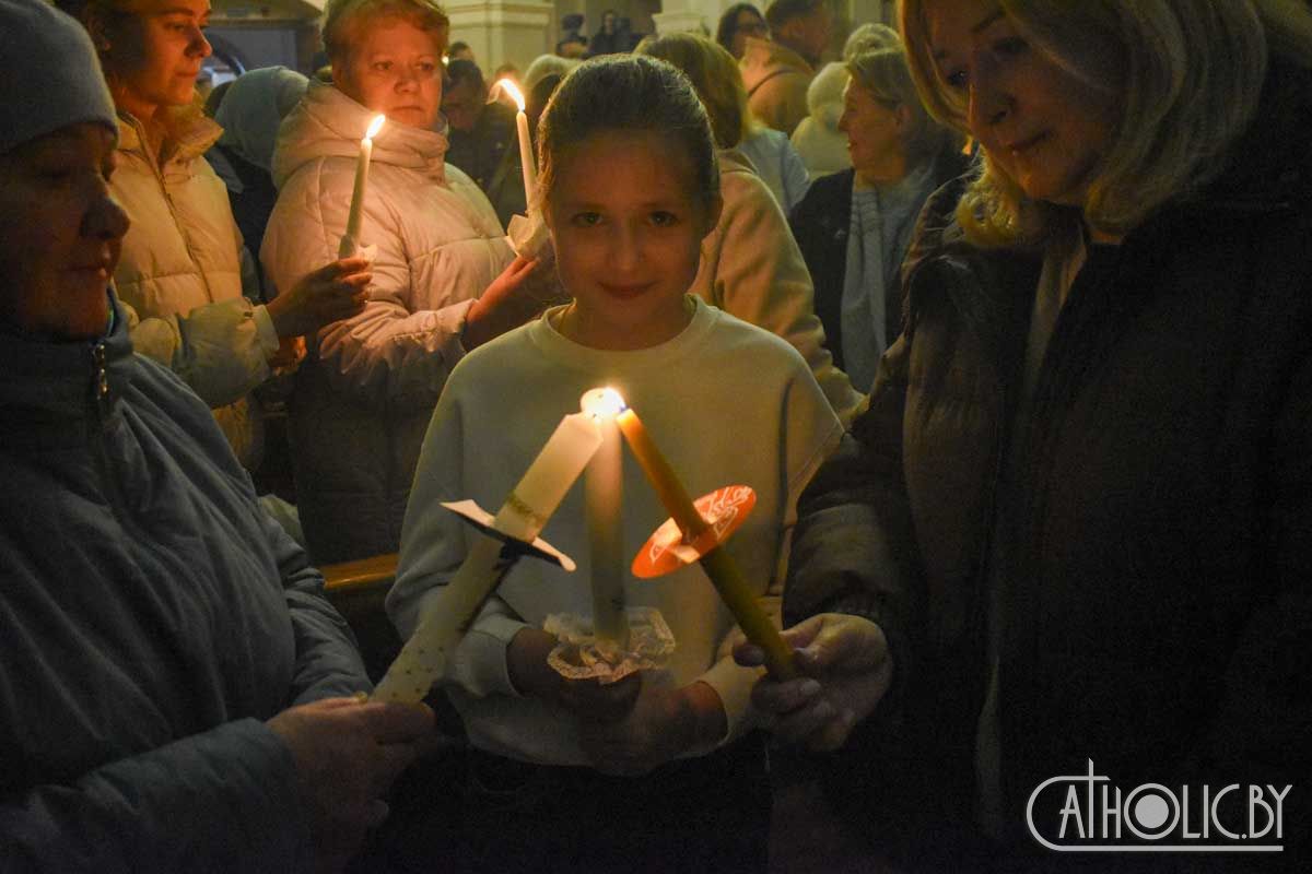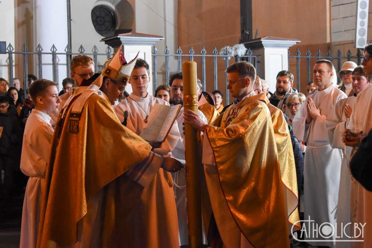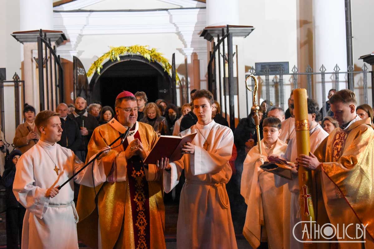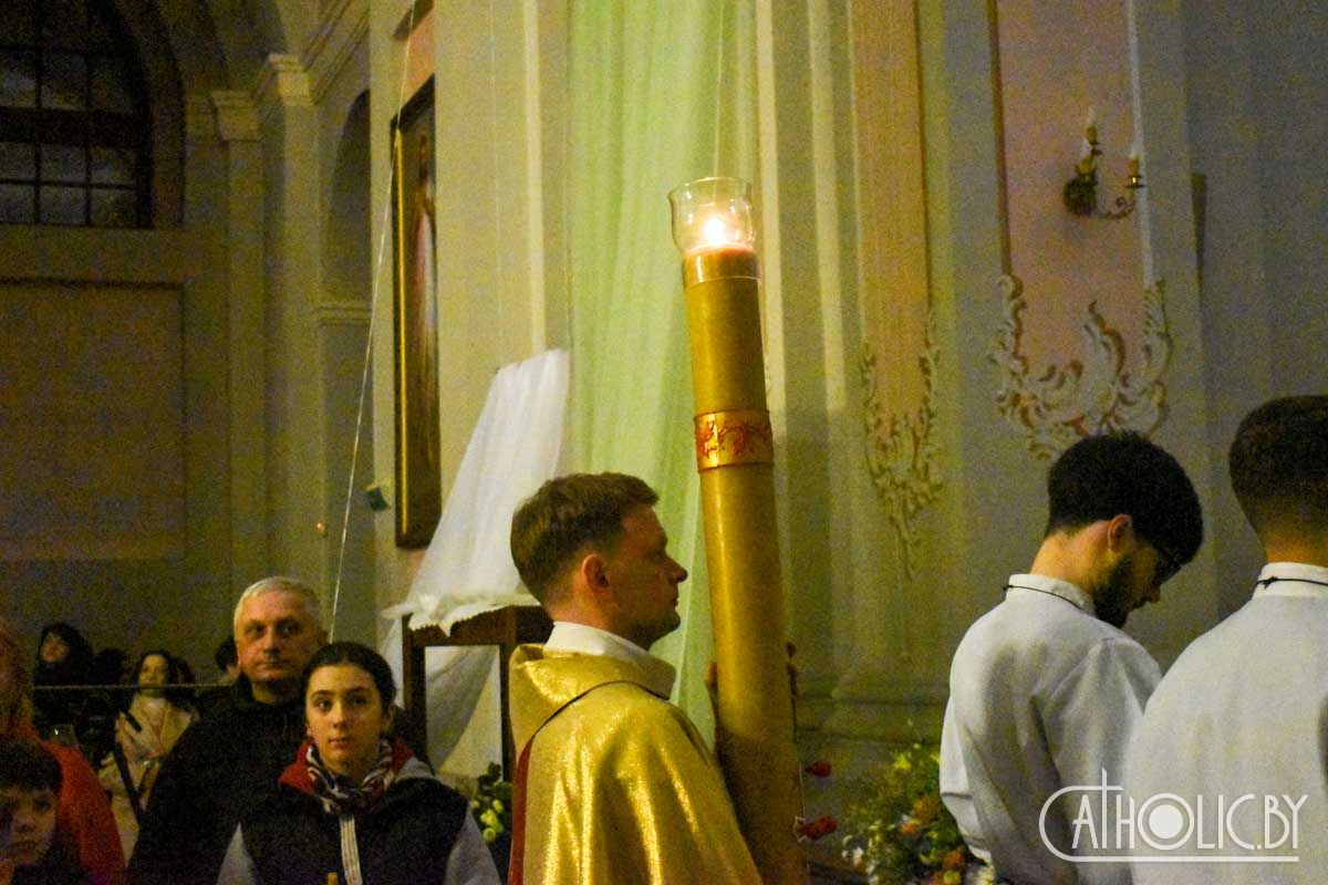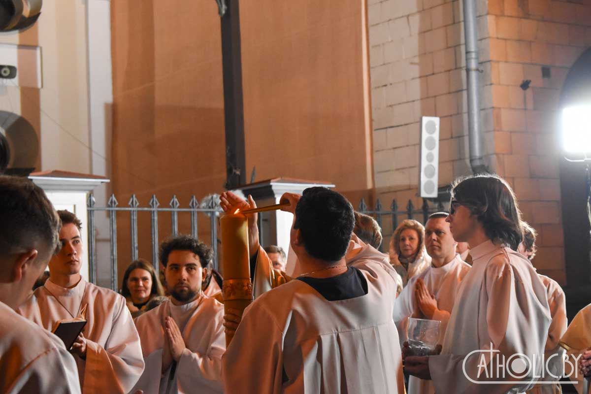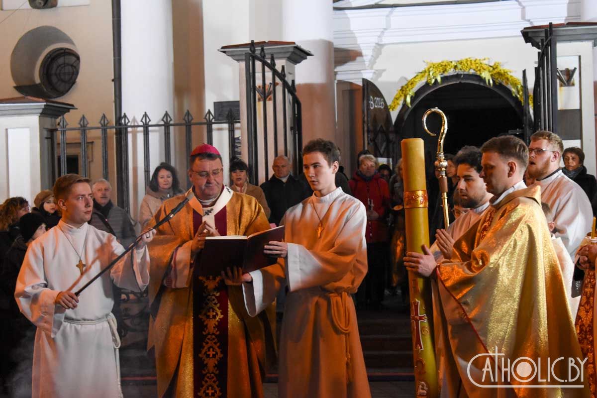 Святкаванне галоўнай хрысціянскай урачыстасці года распачалося Літургіяй святла. Перад уваходам у катэдру быў запалены пасхал — вялікая васковая свечка, якая сімвалізуе Уваскрослага Хрыста. Вернікі ў чуванні перад прыйсцем Пана трымалі прынесеныя свечкі, якія запалілі ад пасхала.