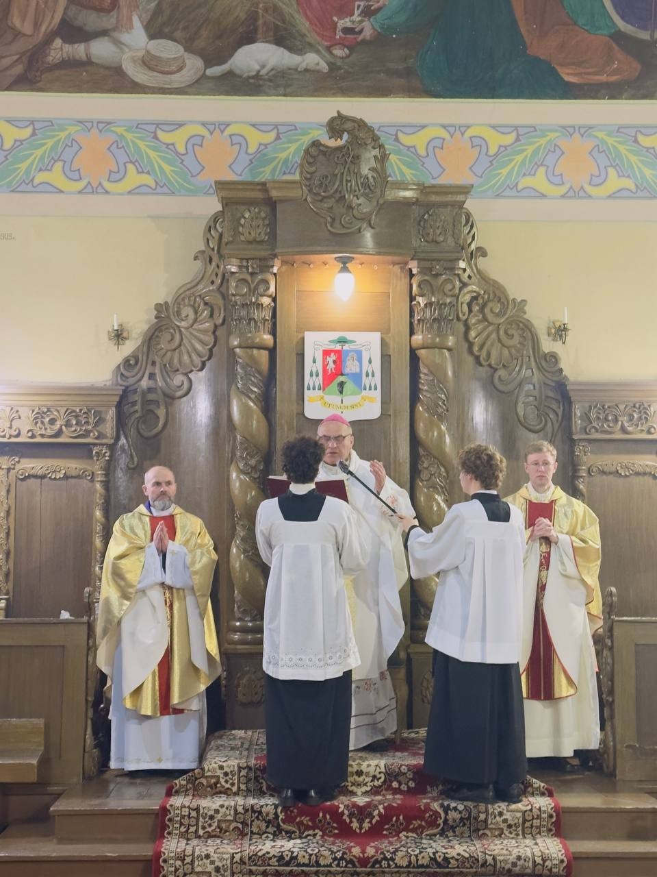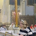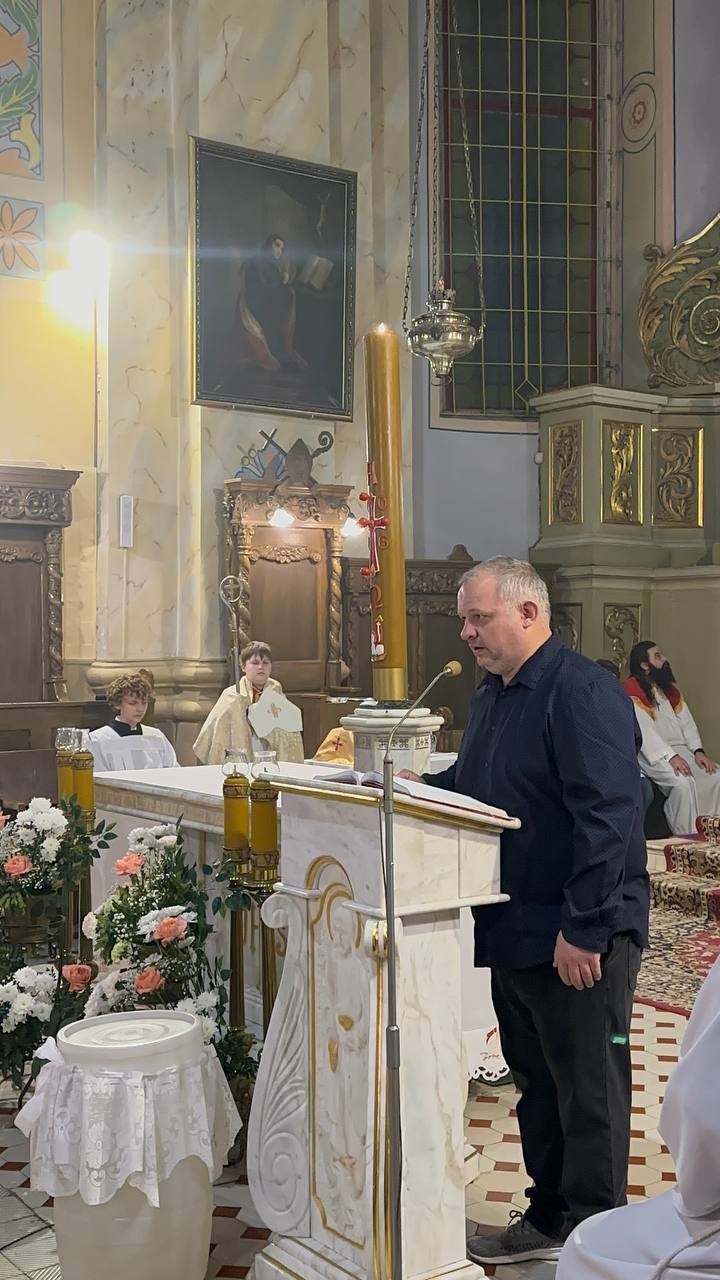 Пасля захаду сонца 4 красавіка ў Вялікую суботу ў пінскай катэдральнай базыліцы распачалася літургія Пасхальнай вігіліі, якую ўзначаліў біскуп Антоні Дзям’янка. Разам з ім у цэлебрацыі ўдзельнічалі святары, якія служаць у парафіях горада Пінска, а таксама шматлікія вернікі.