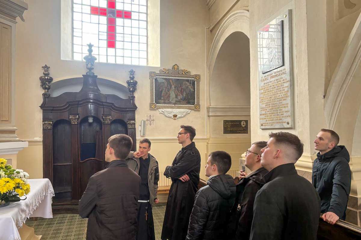 Адзіны ў Беларусі брат францішканін Павел Расілевіч OFMConv пазнаёміў семінарыстаў з гісторыяй касцёла і кляштара, паказаў арган, які знаходзіцца ў касцёле, — найстарэйшы з працуючых арганаў у нашай краіне, распавёў пра святых, абразы якіх змешчаныя ў гэтай святыні, і пра выбітных святароў, якія служылі там раней: найперш пра святога Максіміліяна Кольбэ і слугу Божага Мельхіёра Фардона. Таксама брат Павел падзяліўся гісторыяй свайго паклікання.