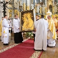 Затым біскуп уручыў абраз прадстаўнікам парафіі ў Шчучыне, з якой такім чынам распачалася перэгрынацыя абраза па дыяцэзіі.
