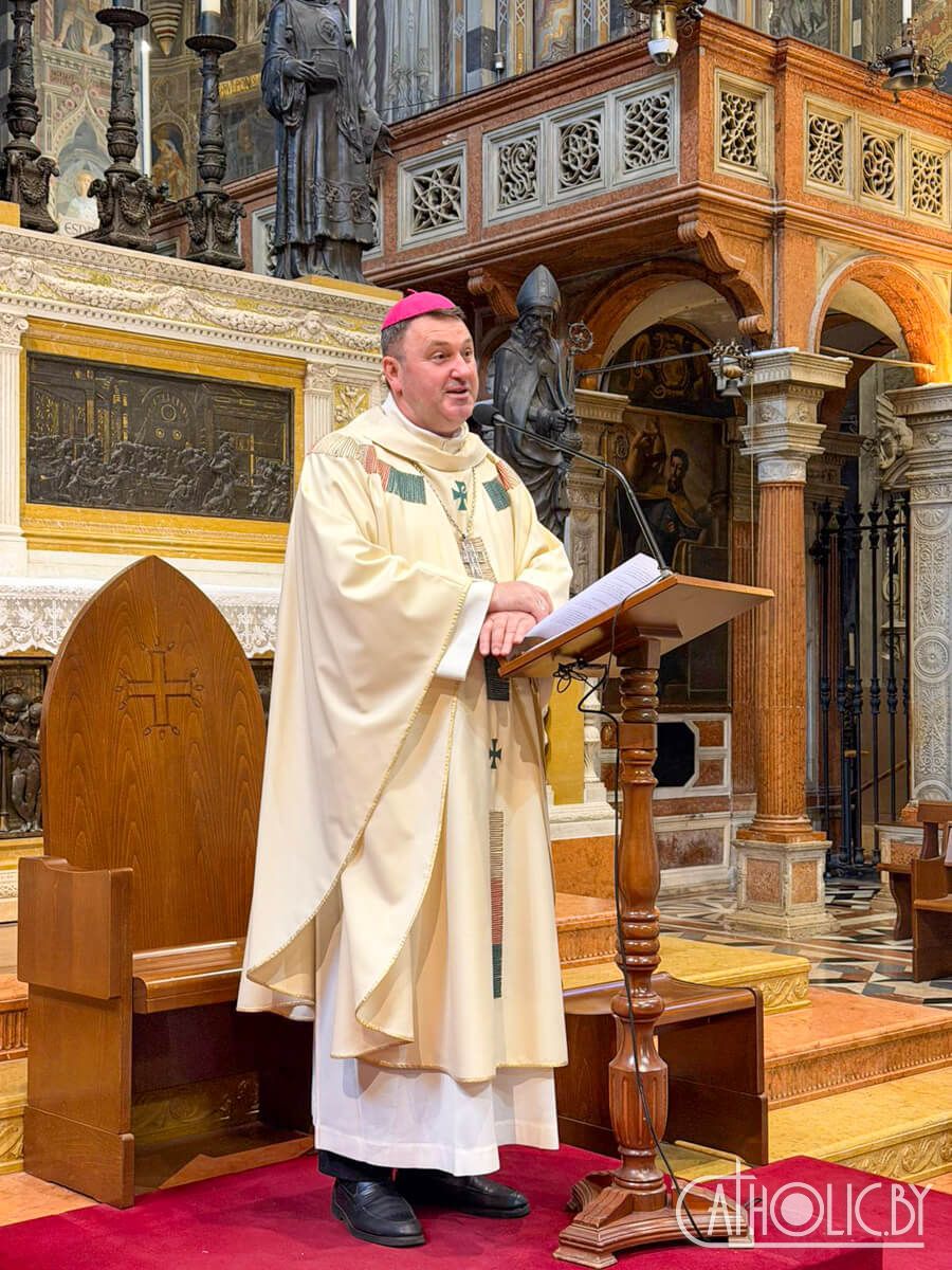Святую Імшу для пілігрымаў у Базыліцы Святога Антонія ўзначаліў арцыбіскуп Станеўскі. У прывітальным слове ён заахвоціў іх браць прыклад з жыцця святога Антонія, каб быць людзьмі глыбокай веры, мець пашану да Эўхарыстыі, жыць Евангеллем і быць гатовымі дапамагаць патрабуючым.