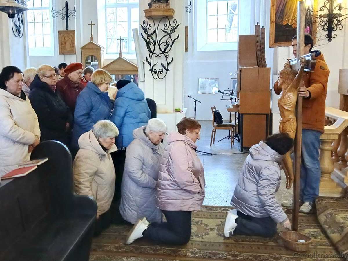 Цэнтральнай падзеяй гэтага вечара стала адарацыя cвятога Крыжа. Старыя падыходзілі, больш маладзейшыя на каленях адаравалі светлае дрэва, якое стала сімвалам збаўлення ўсяго чалавецтва. Ціхі шоргат каленак па кіліме, ледзь чутнае дыханне, сур’ёзныя твары. У гэты момант маўчаў свет, бо ён глядзеў на Крыж.