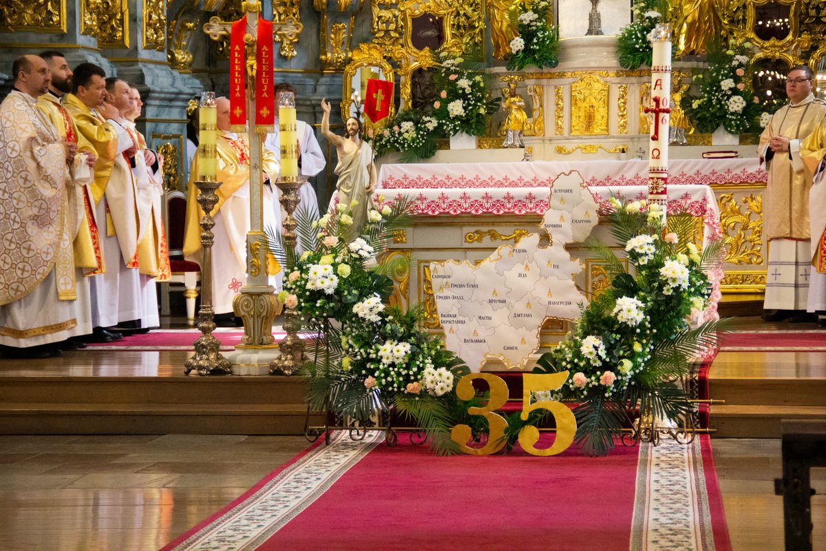 35-ю гадавіну з часу заснавання дыяцэзіі нездарма адзначылі ў катэдры — яна лічыцца маці ўсіх святыняў Гродзеншчыны. Цэлебрацыю Імшы ўзначаліў біскуп Гродзенскі Уладзімір Гуляй, які кіруе дыяцэзіяй з 2024 года. Таксама прысутнічалі старшыня беларускага каталіцкага епіскапату Мітрапаліт Мінска-Магілёўскі арцыбіскуп Юзаф Станеўскі, які з 2013 па 2021 год быў дапаможным біскупам Гродзенскай дыяцэзіі, біскуп эмэрыт Аляксандр Кашкевіч, які ўзначальваў дыяцэзію з моманту яе заснавання ў 1991-м да 2024 года, Апостальскі адміністратар для грэка-католікаў Беларусі архімандрыт Сяргей Гаек, сакратар Апостальскай нунцыятуры ў Беларусі мансеньёр Кшыштаф Сэрока, прэзбітэры, дыяканы, кансэкраваныя асобы, вернікі парафій Гродна і наваколля.