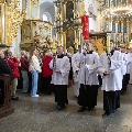 Затым біскуп уручыў абраз прадстаўнікам парафіі ў Шчучыне, з якой такім чынам распачалася перэгрынацыя абраза па дыяцэзіі.