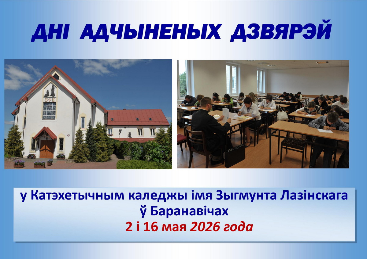 Катэхетычны каледж імя Зыгмунта Лазінскага ў Баранавічах сардэчна запрашае на дні адчыненых дзвярэй, якія будуць праводзіцца ў маі і чэрвені.